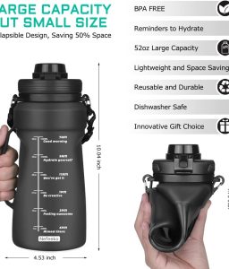 Nefeeko Collapsible Water Bottles, 1.5L Reusable Collapsible Water Bottle for Travel Leakproof, BPA Free Foldable Silicone Water Bottles with Straw for Traveling Sport Gym Camping Hiking