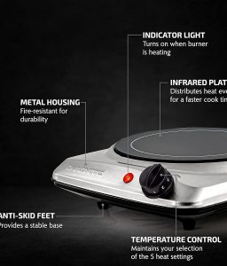 OVENTE Countertop Infrared Single Burner, 1000W Electric Hot Plate with 7” Ceramic Glass Cooktop, 5 Level Temperature Setting & Easy to Clean Base, Compact Stove for Home Dorm Office, Silver BGI101S