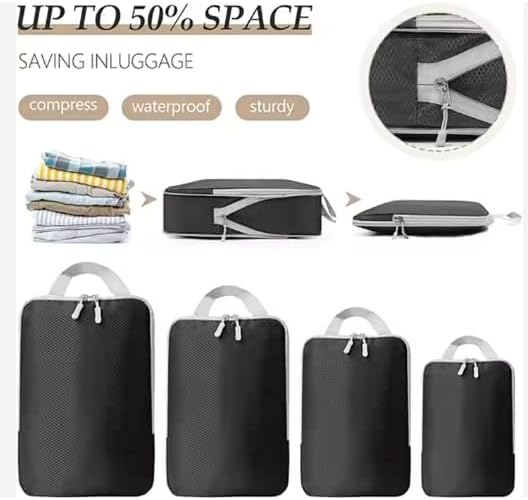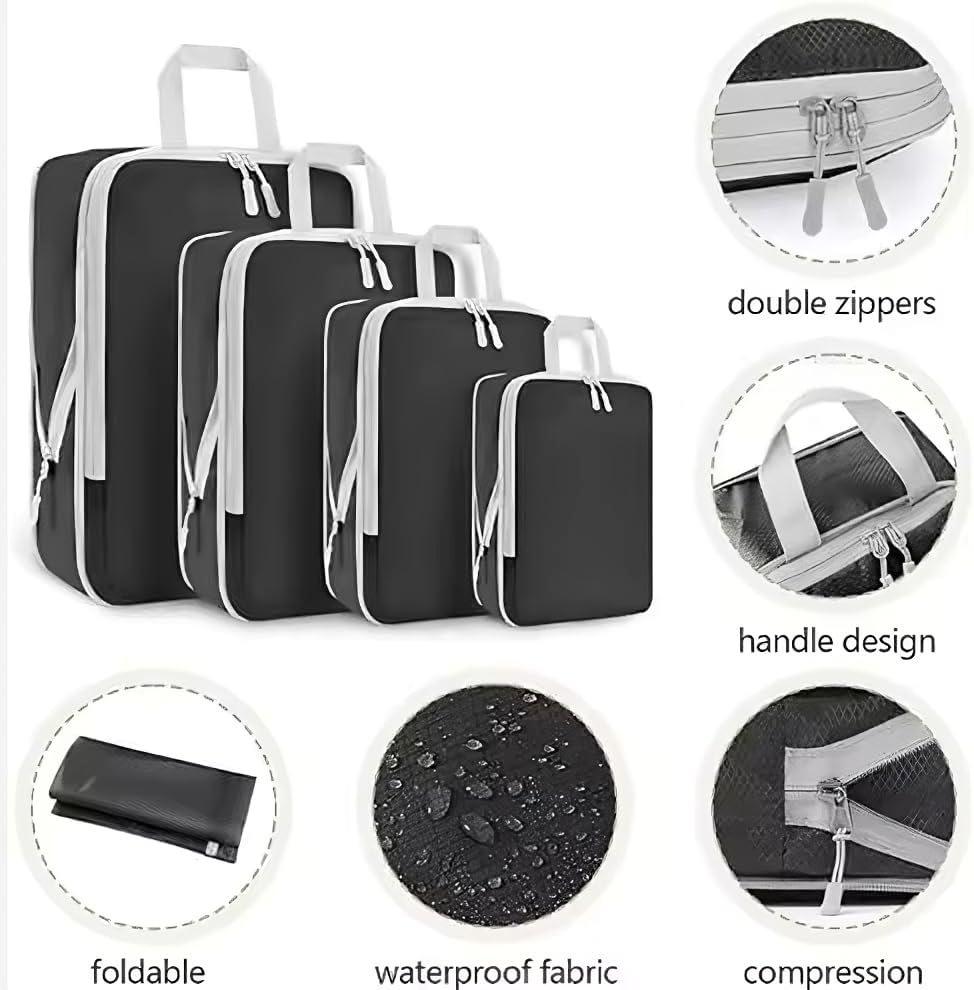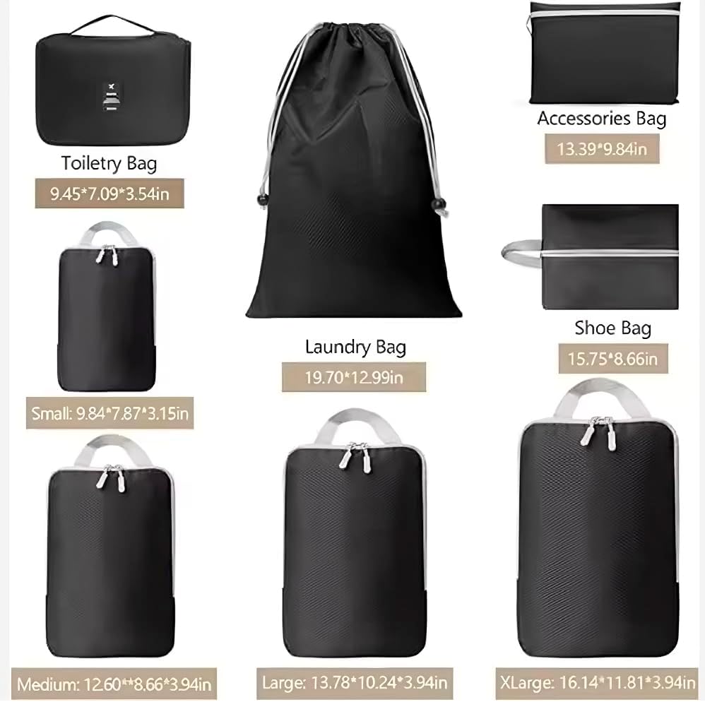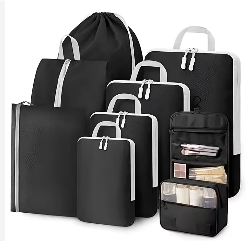 Introducing the 8-Piece Travel Packing Cubes Set in sleek Black and White! Keep your belongings organized and easily accessible while on the go with this versatile and stylish packing cube set.
